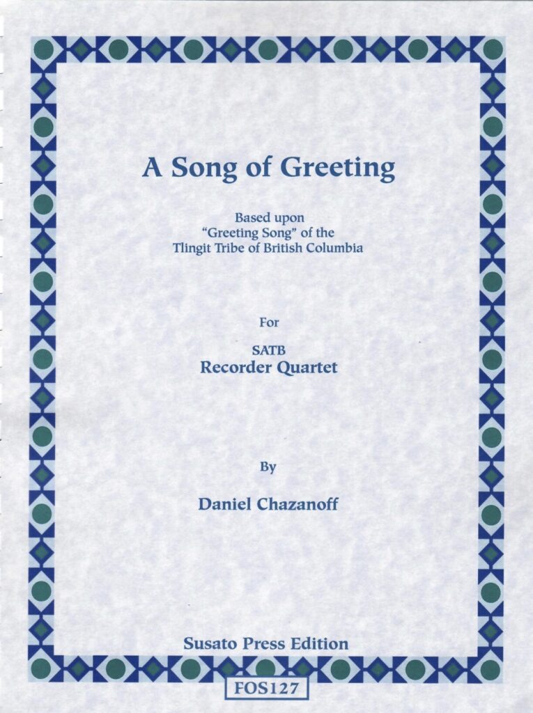 10110 – A Song of Greeting, Recorder Quartet based upon the “Greeting Song” of the Tlingit Tribe of British Columbia, by Daniel Chazanoff