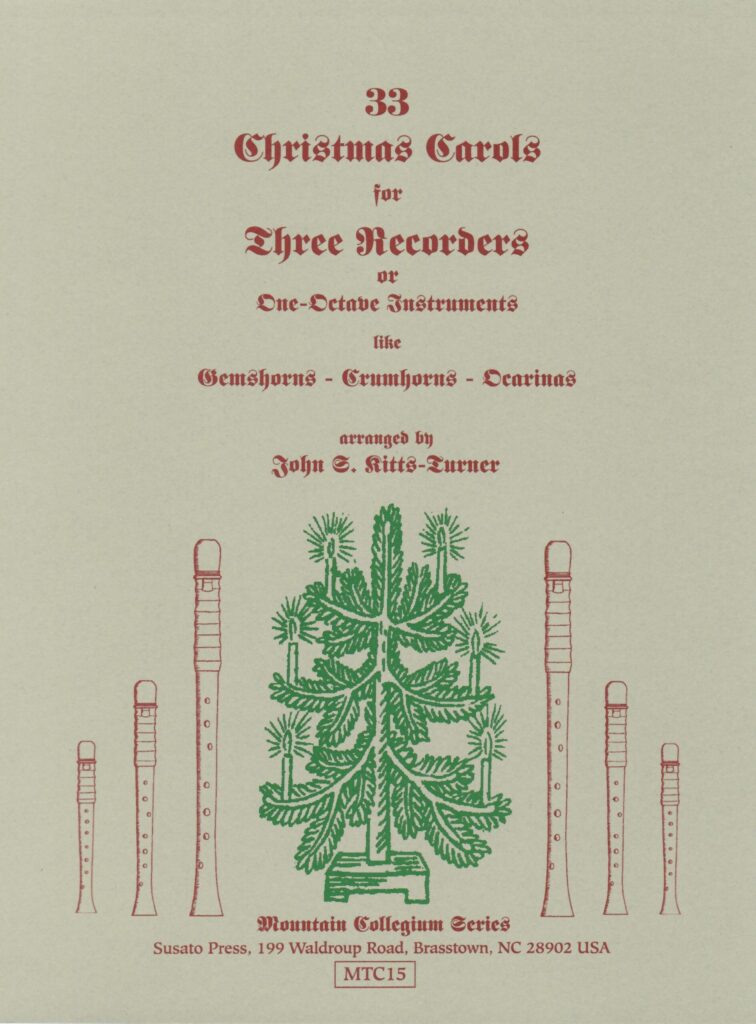 33 Christmas songs in SAT (Soprano/Alto/Tenor). Arranged for nine-note instruments by John S. Kitts-Turner.