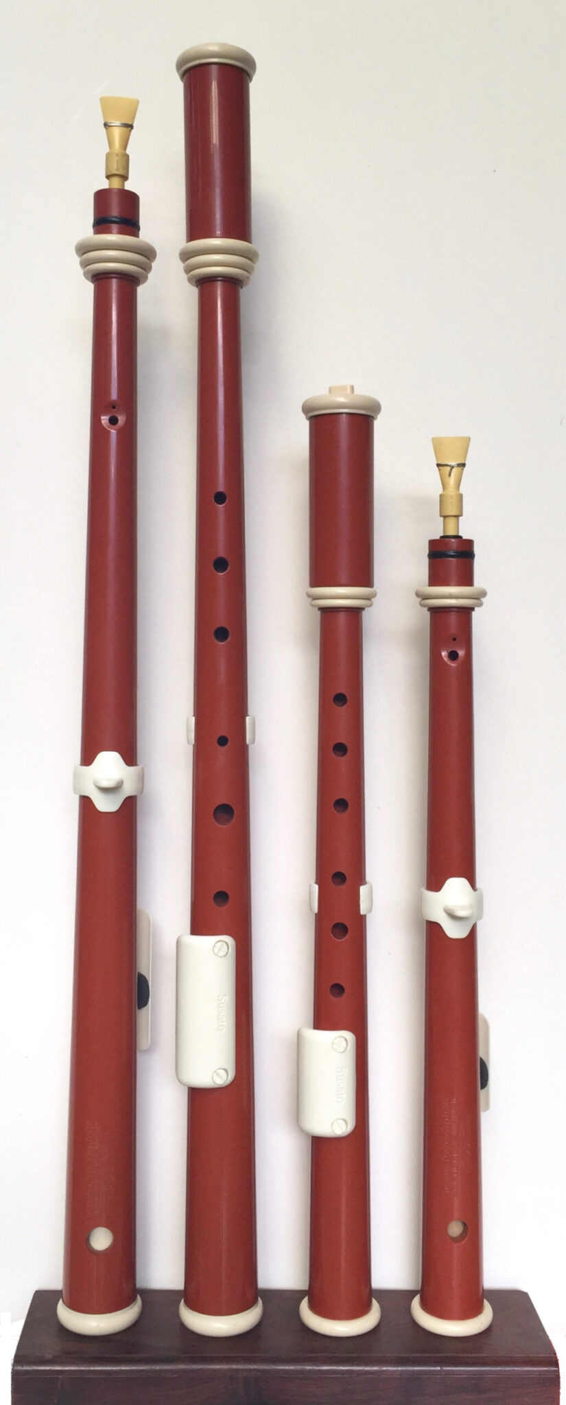 The lengths of our Reedpipes/Rauschpfeiffen are 56cm for the -c’- Soprano, and 41cm for the -f’- Sopranino.